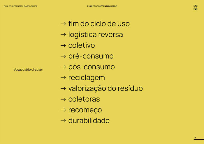 Criação da estratégia para comunicar visualmente o assunto sustentabilidade, na Melissa. Trabalho que também envolveu direção de arte para fotos explorando esse tema, e projeto gráfico do Guia de Sustentabilidade, que consolidou todo o trabalho liderado pela Cora Design, que me convidou para pensar toda a parte visual dessa comunicação.