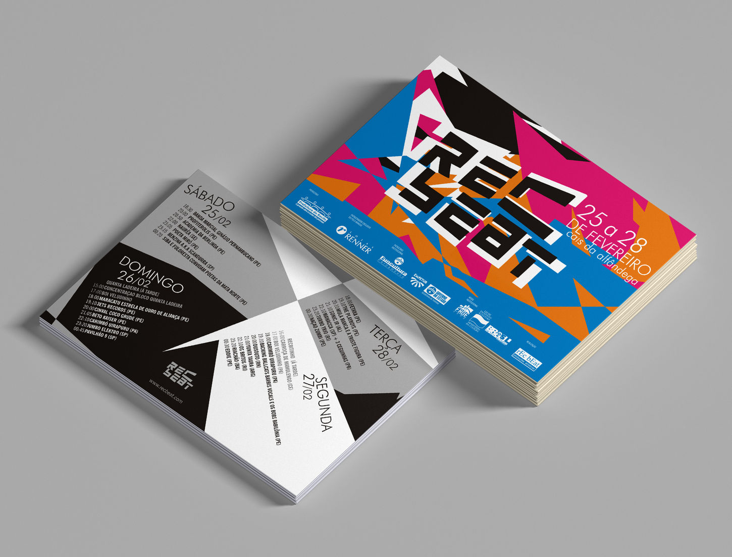 Criação de identidade visual para três edições (2006, 2007 e 2009) do festival de música Recbeat. Na edição de 2007 a missão era criar um logotipo que fosse ao mesmo tempo versátil e atemporal, sendo o elemento gráfico que atravessaria as futuras edições do festival, em vez de um lettering diferente para cada ano. E desde então esse logotipo vem cumprindo bem o seu papel, há quase 20 anos desse festival que é uma das vigésimas maravilhas do carnaval do Recife.